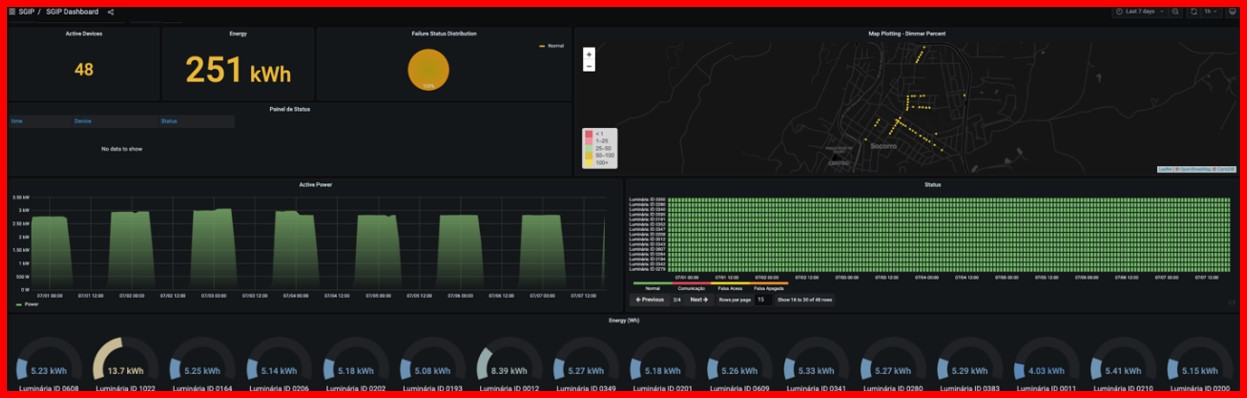 O Sistema de Gestão e Iluminação Pública (SGIP) é uma solução para gestão de iluminação pública com solução de Fotocélula IoT Inteligente e um software para gestão do parque de luminárias. Mantendo a compatibilidade mecânica das fotocélulas analógicas, a Fotocélula IoT possui capacidade de comunicação remota com diversas tecnologias, tais como LoRaWAN, NB-IoT, entre outros. O software de gestão possibilita visualização de consumo de energia, acompanhamento de falhas, envio de comandos de dimerização e possui um módulo de ordem de serviços.